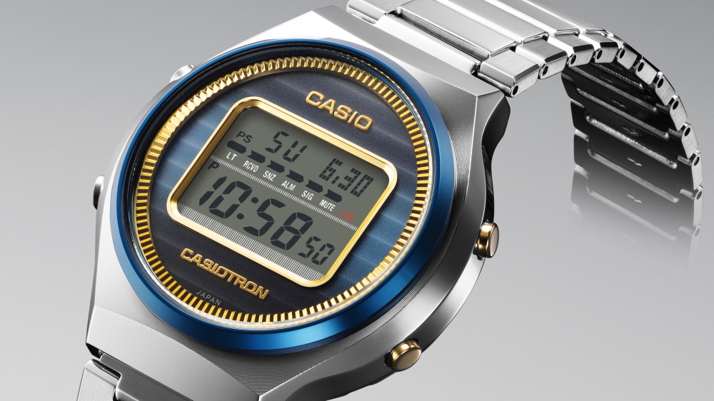 首先要提到的就是casio vintage系列限量再版手表casiotron trn-50ss。手表复刻了casiotron的表盘设计,并点缀了象征太阳的金色,与象征天空与海洋的深蓝色相得益彰。