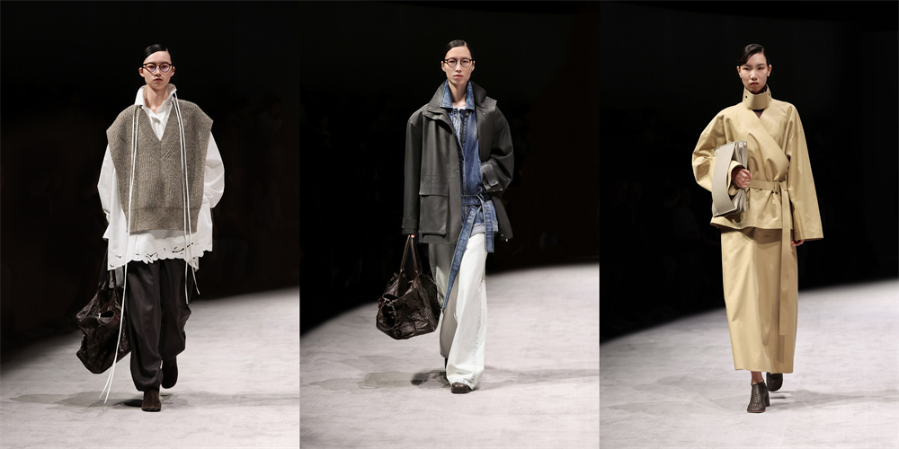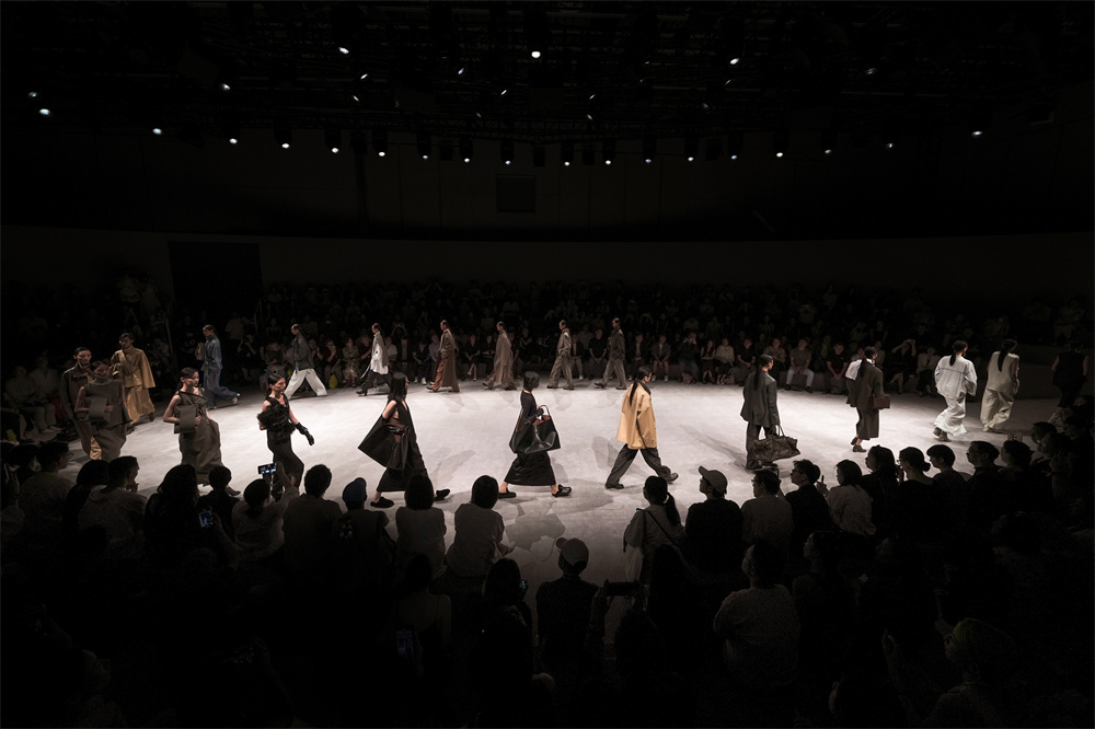 速写秀场以“慢家伙们”的回溯之圆为概念,将90年代的经典男性衣橱以极简手法重新诠释,圆形结构与光影的巧妙运用,映射出丰沛的人生状态。青年歌手、演员陈立农作为特邀嘉宾出席观秀,新生代中国模特陈卓国内首秀惊艳亮相,演员、模特张亮压轴走秀,生动诠释品牌的复古未来主义风格。艺术dna和“幽默再思考”的主张一直是速写坚定不变的品牌内核,秀场上的创意设计与沉浸式表演,正是其品牌精神的具象化呈现。