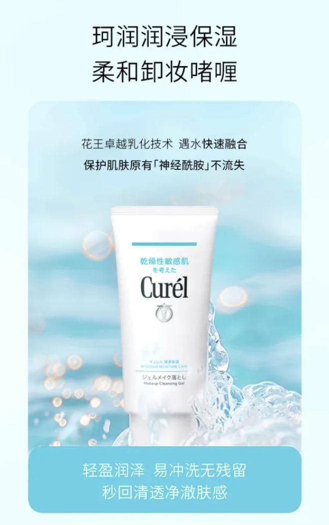 珂润润浸保湿柔和卸妆啫喱,柔软清爽的啫喱状质地,无需用力搓揉即可轻松推开,辅助按摩肌肤,温和去除肌肤老化角质,即使是敏感肌也能每天使用。温和卸除口红、粉底、防晒产品。同时特殊配方守护肌肤原有的滋润成分“神经酰胺”不流失,避免肌肤屏障受损,用后肌肤不会有干燥紧绷的感觉,保护肌肤水润。
