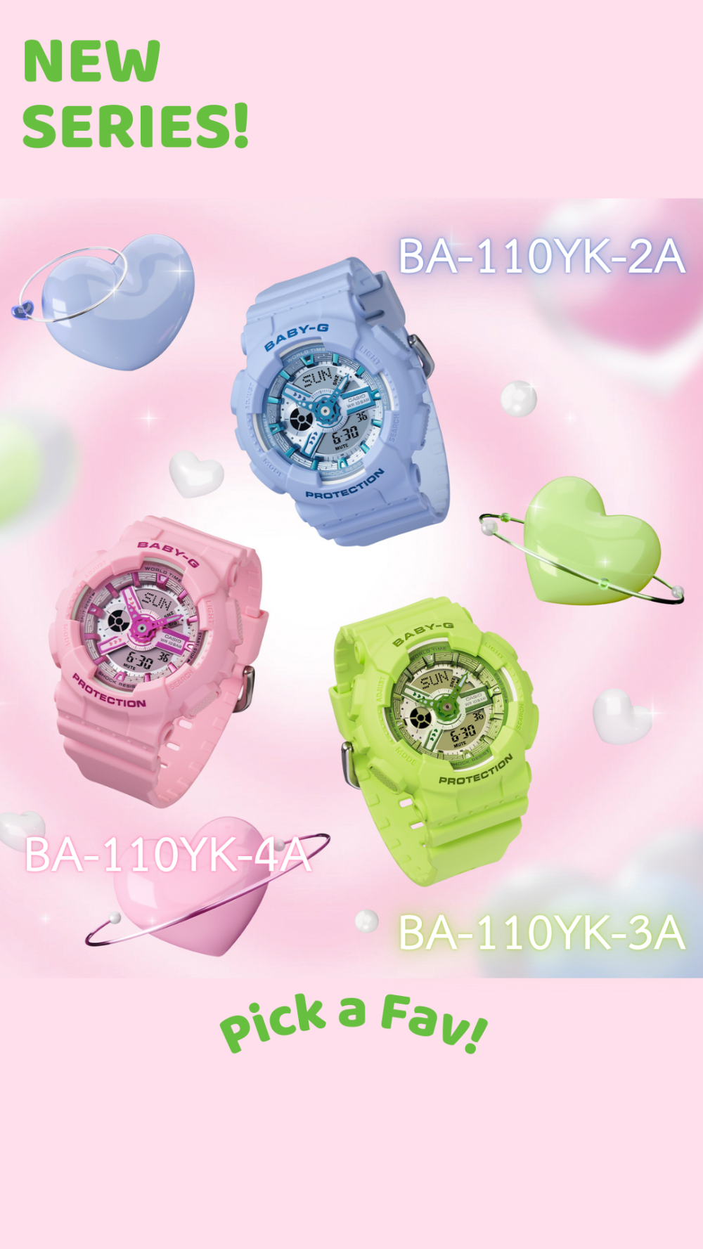 在充满趣味的设计之下,「y2k fresh color」系列依旧继承了baby-g的抗震结构,并配有高达100米的防水性能。在各种场合都能给予你风格与功能的双重加持,为日常穿搭增添个性色彩。「y2k fresh color」系列现已正式发售!速速入手,加入大胆又梦幻的y2k美学吧!