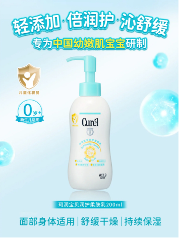 珂润宝贝润护柔肤乳,同样添加了花王王牌“神酰1”成分,以及尿囊素和植物由来的角鲨烷两大成分,双重呵护皮脂膜与角质层屏障。采用“液晶乳化体系”,特殊结构与肌肤相似,更具亲肤力。轻盈乳液质地,为宝宝筑起保湿防护网。面部和身体都可使用,长效锁水保湿,帮助宝宝缓解和改善换季及环境变化导致的肌肤烦恼。