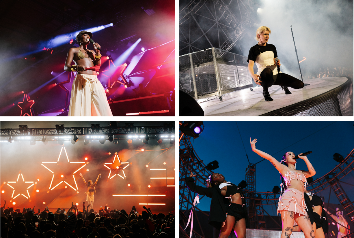 (从左至右,从上至下)说唱歌手doechii、歌手robyn、唱作人pinkpantheress、歌手sailorr
