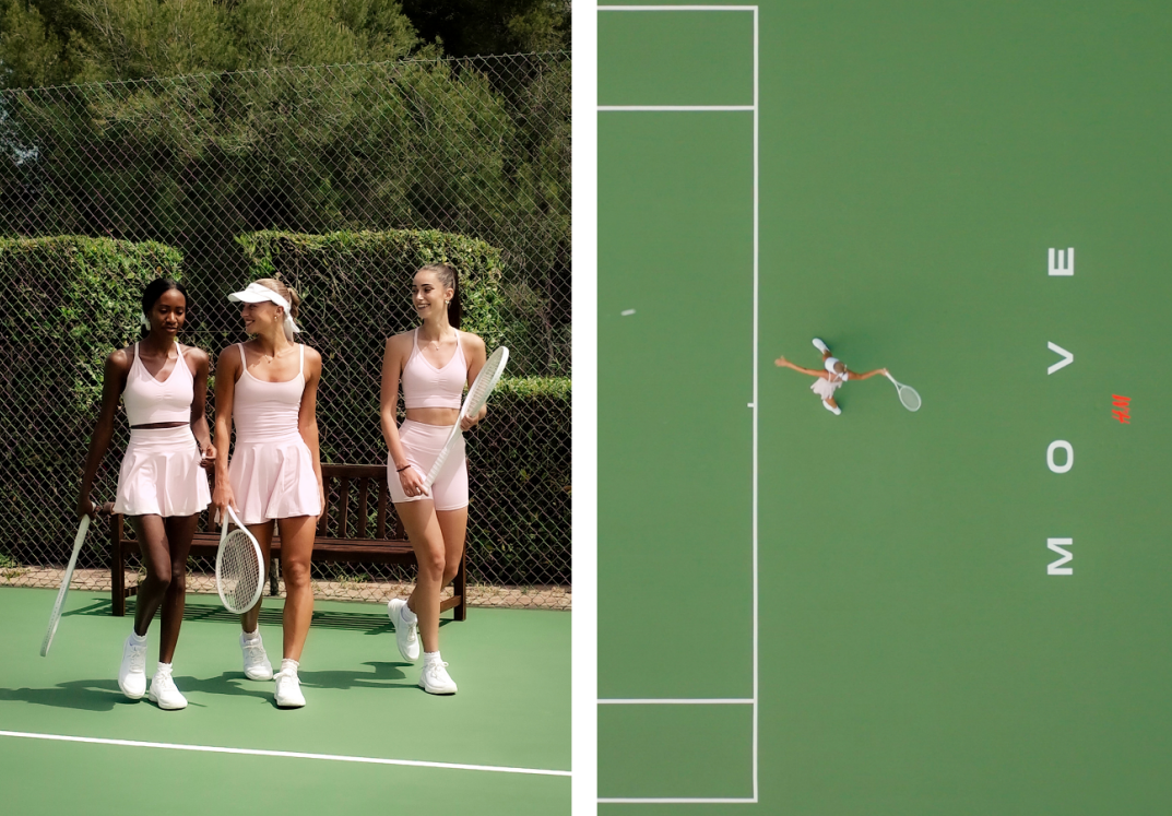 h&m move 设计负责人marie fredros 表示:“本次系列创作灵感来源于雾粉色所带来的纯净而柔美的力量。我们围绕这一主色调展开构思,通过利落的结构与考究的工艺处理,诠释经典网球服版型,为假日运动场景打造富有层次感的造型可能。”