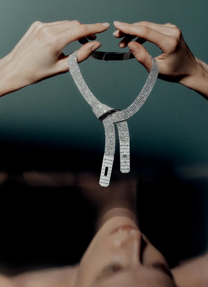 kelly gavroche项链的巧思令人惊叹!镶钻的侧面饰带如丝巾般轻盈,巧妙地环绕颈部,勾勒出优美线条。何等自由!何等大胆!